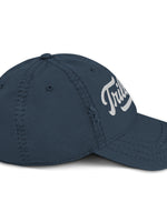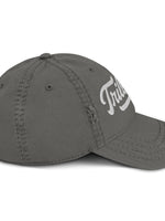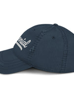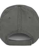 Expand your headwear collection with this fashionable dad hat. With a slightly distressed brim and crown fabric, it’ll add just the right amount of edge to your look. For a quick and easy outfit pair it with slacks, your favorite jeans, and a sports tee.